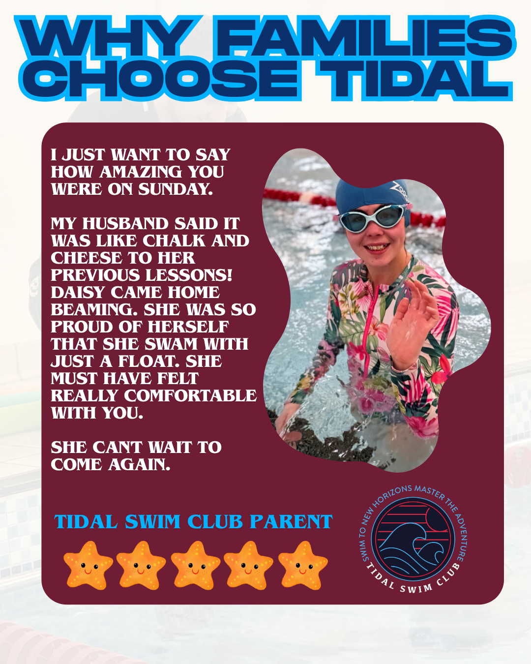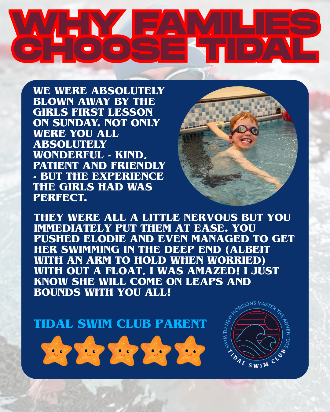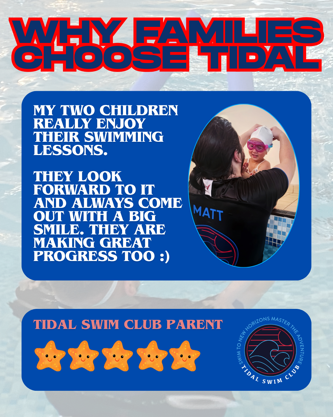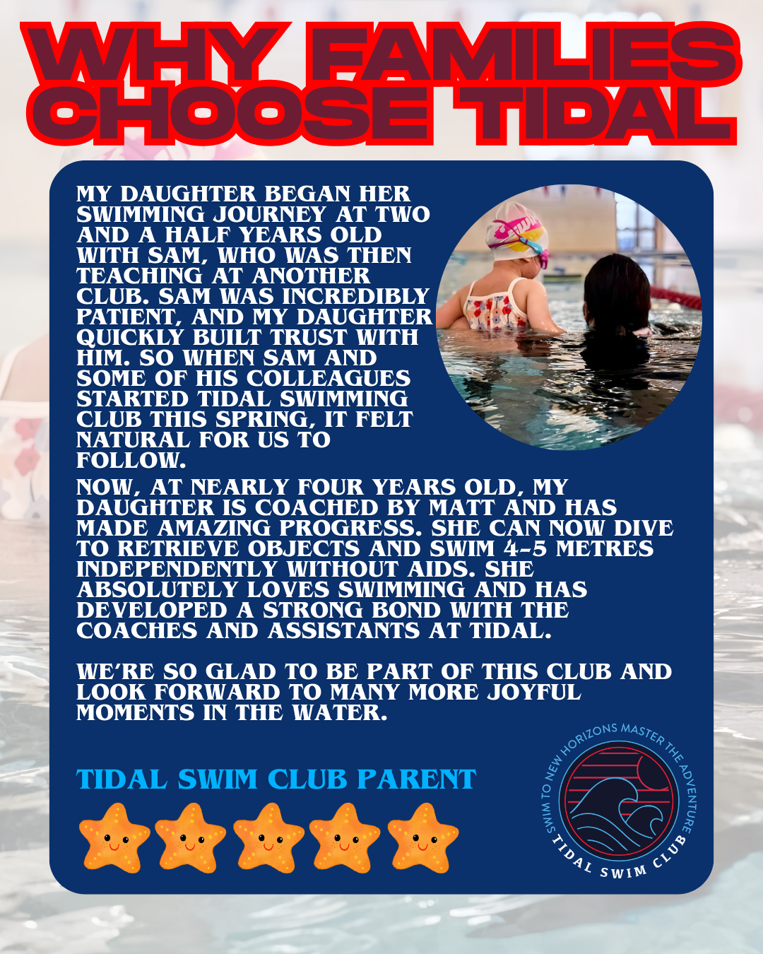 At Tidal Swim Club, we believe that every swimmer’s journey is unique, these voices are the heartbeat of our swim school.